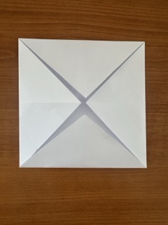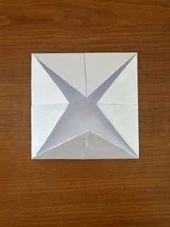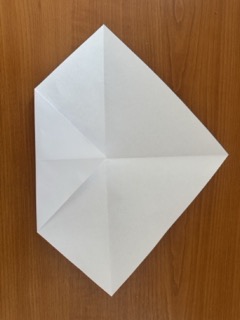 3. Ohněte rohy do středu – všechny čtyři rohy směřují do středu papíru.
