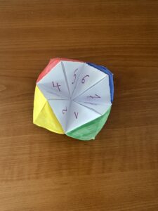 5. Insert your fingers into the pockets and open and close the fortune teller.